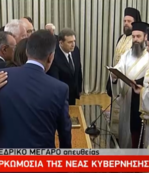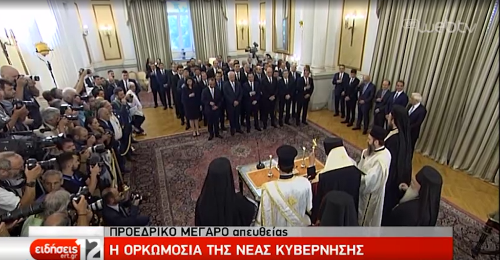 Ενώπιον του Προέδρου της Δημοκρατίας, Προκόπη Παυλόπουλου και παρουσία του πρωθυπουργού, Κυριάκου Μητσοτάκη, ορκίστηκε σήμερα το μεσημέρι η νέα κυβέρνηση στο Προεδρικό Μέγαρο. Τα 50 νέα μέλη του υπουργικού συμβουλίου έδωσαν θρησκευτικό όρκο, ενώ της τελετής χοροστάτησε ο αρχιεπίσκοπος Αθηνών και πάσης Ελλάδος Ιερώνυμος.