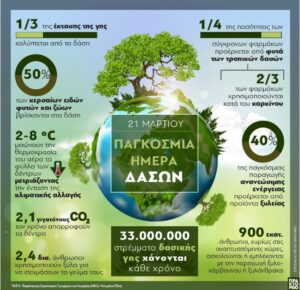 Η 21η Μαρτίου έχει καθιερωθεί από την διεθνή κοινότητα ως Παγκόσμια ημέρα Δασοπονίας. Η θεσμοθέτηση της έχει σκοπό να τονίσει και να στρέψει το ενδιαφέρον πολιτών και φορέων στην ανάγκη προστασίας του Δάσους.