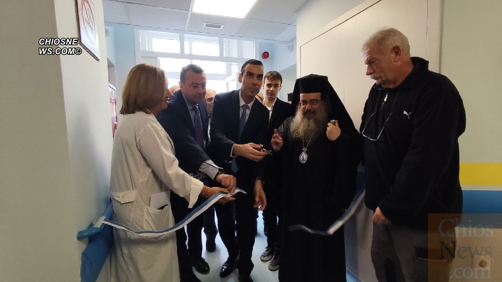 Τα εγκαίνια της ανακαινισμένης Παιδιατρικής Κλινικής του Νοσοκομείου Χίου, πραγματοποιήθηκαν σήμερα το μεσημέρι παρουσία του υφυπουργού Υγείας Μάριου Θεμιστοκλέους και με τις ευλογίες του Μητροπολίτη Χίου, Ψαρών και Οινουσσών κ. Μάρκου. Μάλιστα η Μητρόπολη Χίου ήταν ο κύριος δωρητής του έργου με 15.000 ευρώ, ενώ πρόκειται να κάνει χορηγία και για τον εξοπλισμό της κλινικής με σύγχρονα κρεβάτια.