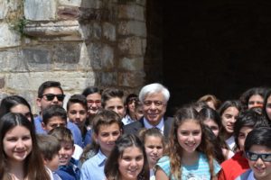 Ο Προκόπης Παυλόπουλος είχε την ευκαιρία να συνομιλήσει και με μαθητές σχολείων που είχαν επισκεφθεί το Κάστρο της Χίου στα πλαίσια του προγράμματος «Η Ευρώπη στην περιοχή μου 2017».