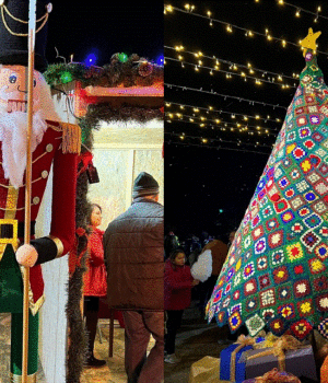 Φέτος, δίπλα στο δέντρο στέκονται καμαρωτοί δύο πλεκτοί καρυοθραύστες, σαν να είναι οι φύλακες του χωριού, και ένας καλοσυνάτος πλεκτός χιονάνθρωπος, που αντέχει κάθε μεταβολή της θερμοκρασίας. Έργα τέχνης που έρχεται από πολύ παλιά -αλλά και έργα υπομονής και επιμονής.