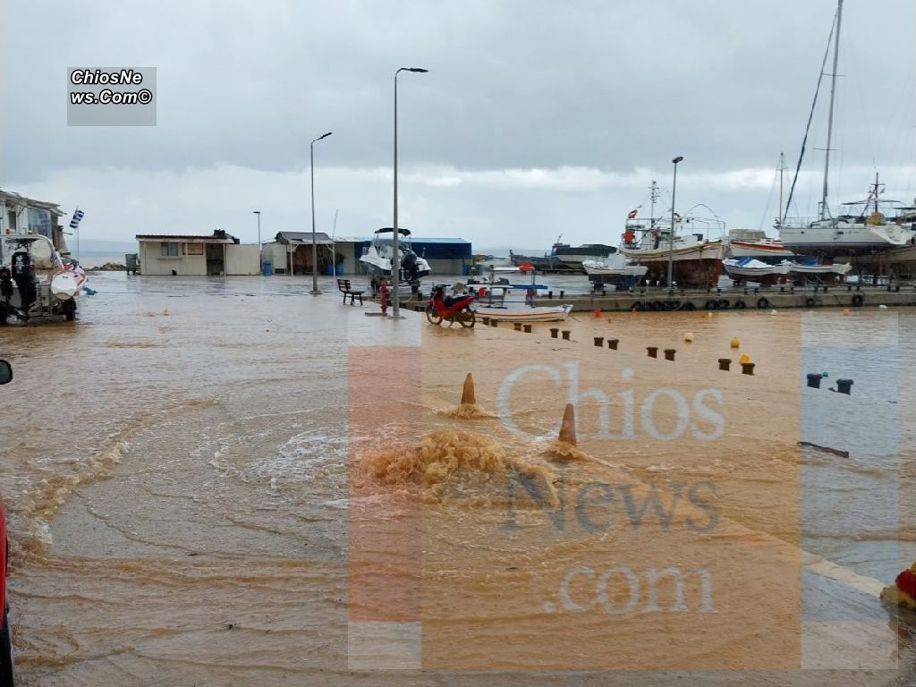 Σε πολλές παρόμοιες περιπτώσεις η Πολιτική Προστασία του Δήμου Χίου μοίρασε τσουβαλάκια με άμμο, έτσι ώστε να ανακοπεί η ορμή του νερού.