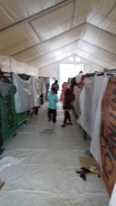 Είκοσι και πλέον σκηνές της Υπατης Αρμοστείας έχουν πρόχειρα στηθεί σε διπλανό χωράφι που με την πρώτη βροχή θα μετατραπεί σε λασπότοπο. Εκεί αναγκάζονται να διαμένουν χωρίς καμιά πρόβλεψη για οτιδήποτε, χωρίς καμιά βοήθεια, εκατοντάδες άνθρωποι, ανάμεσά τους πάρα πολλά παιδιά, έγκυες γυναίκες και πολλοί άνθρωποι με προβλήματα υγείας.
