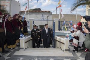 «Εξοχότατε κύριε Πρόεδρε της Ελληνικής Κυβερνήσεως, Με εθνική συγκίνηση και πατρική αγάπη υποδέχομαι τον Πρωθυπουργό της Ελλάδος στα ανατολικά θαλάσσια σύνορα της Ελλάδος και της Ευρώπης, στο ηρωικό νησί των Ψαρών, πατρίδα του μπουρλοτιέρη Κωνσταντή Κανάρη, ένα από τα 42 νησιά και βραχονησίδες της Θεοφώτιστου Μητροπόλεως μου, επί των οποίων η Ελληνική Κυβέρνηση έχει απ’αιώνων και έως της συντέλειας των αιώνων ΑΠΟΚΛΕΙΣΤΙΚΑ ΕΘΝΙΚΑ ΚΥΡΙΑΡΧΙΚΑ ΔΙΚΑΙΩΜΑΤΑ». Αυτός ήταν ο λιτός χαιρετισμός του Μητροπολίτη Χίου κ. Μάρκου με την ευκαιρία της επίσκεψης του Πρωθυπουργού στα Ψαρά με αφορμή την εθνική μας επέτειο της 25ης Μαρτίου. «Η Ελλάδα είναι πόλος -αλλά και εγγυητής- της σταθερότητας και της ασφάλειας για την περιοχή μας. Γι’ αυτό το λόγο, δεν επιτρέπει σε κανέναν να παίζει παιχνίδια που θέτουν σε κίνδυνο την ομαλότητα» τόνισε ο κ. Τσίπρας, κάνοντας λόγο για «κορώνες» στη σκιά των προκλητικών δηλώσεων του Ταγίπ Ερντογάν ότι «θα σκοτωθούμε και θα σκοτώσουμε και άλλους για τη μεγάλη Τουρκία». «Στον 21ο αιώνα την ευημερία και την πρόοδο ενός λαού δεν την διασφαλίζουν οι κορώνες αλλά η διαρκής επίλυση των διαφορών» σημείωσε ο πρωθυπουργός. «Η Ελλάδα διαθέτει ισχυρή αποτρεπτική δύναμη όχι για να απειλήσει, αλλά για να εξασφαλίσει την ειρήνη και τη σταθερότητα στην περιοχή» επισήμανε, αναφέροντας παράλληλα ότι η Ελλάδα «επιδιώκει την ειρηνική συνύπαρξη, την αλληλεγγύη και τη συνεργασία με τους γείτονες της. H Ελλάδα είναι μια χώρα σύγχρονη, ευρωπαϊκή, δημοκρατική, με κοινωνική δικαιοσύνη, ισονομία και απόλυτο σεβασμό στις ατομικές ελευθερίες» τόνισε ο Αλέξης Τσίπρας.