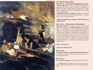 11.45 π.μ. Τέλεση Αρχιερατικού Τρισαγίου και κατάθεση στεφάνων στο Ηρώο των Πεσόντων.