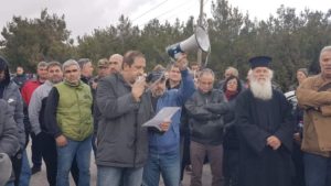 «Δεν θα επιτρέψουμε να μπει πάσσαλος» τόνισε ομιλητής, ανακοινώνοντας ότι θα τοποθετηθούν βάρδιες έτσι ώστε να μην επιτραπεί καμία εργασία στην περιοχή των 625 συνολικά «επιταγμένων» στρεμμάτων.