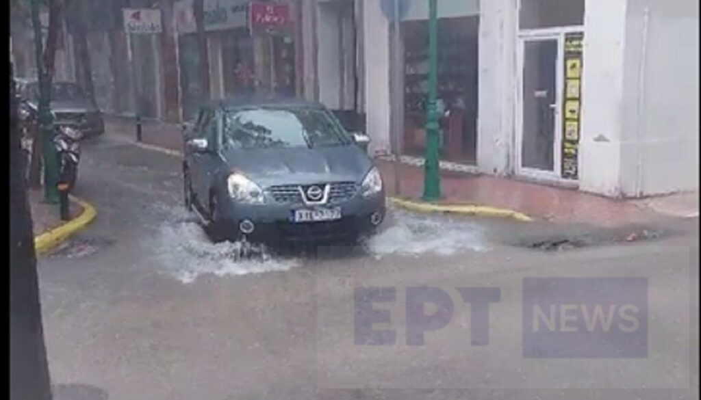 Στην οδό Βενιζέλου αλλά και στον παραλιακό δρόμο της προκυμαίας, τα φρεάτια δεν μπορούσαν να τραβήξουν όλα τα νερά, με αποτέλεσμα να είναι πλημμυρισμένο το οδόστρωμα.