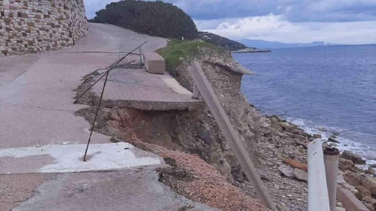 Σε φωτογραφίες που πολίτες έκαναν στο διαδίκτυο παρουσιάζεται να έχει υποχωρήσει ο δρόμος στην περιοχή του Αγίου Αιμιλιανού.