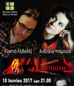 O Παγχιακός Σύλλογος Ατόμων με Αναπηρία γιορτάζει φέτος 20 χρόνια από την ίδρυσή του με την διοργάνωση δύο μεγάλων γεγονότων: της επιστημονικής διημερίδας με θέμα «Η Βία και οι Επιπτώσεις της στη Σύγχρονη Κοινωνία των Παιδιών και των Ατόμων Ευάλωτων Κοινωνικών Ομάδων» και της παράστασης χορού από το χοροθέατρο ΔΑΓΙΠΟΛΗ του Γιώργου Χρηστάκηκαι συναυλίας με τους Κώστα Λειβαδά και Αντριάνα Μπάμπαλη, με τη φιλική συμμετοχή του Αντώνη Καφετζόπουλου.