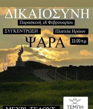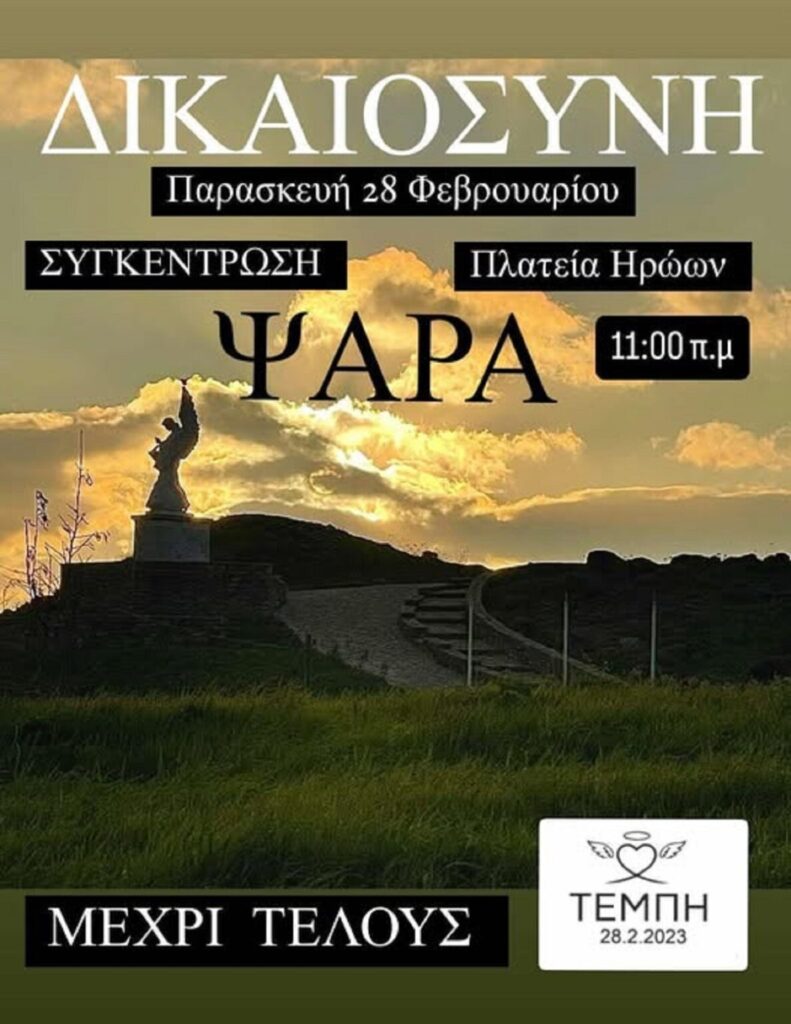 Στην πλατεία Ηρώων καλούνται οι Ψαριανοί μικροί και μεγάλοι να πάρουν μέρος την Παρασκευή, 27/2, στις 11.00 το πρωί στη συγκέντρωση για τα Τέμπη.