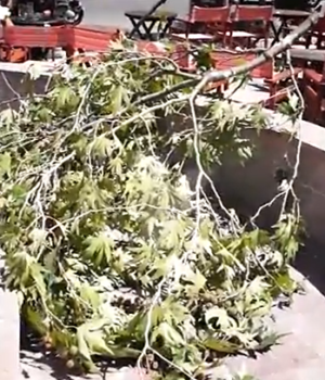 Ενώ έπινε αμέριμνη τον καφέ της στην πλατεία Βουνακίου το μεσημέρι της Πέμπτης, κλαδί του μεγάλου πλατάνου έσπασε με αποτέλεσμα να την χτυπήσει στο κεφάλι.