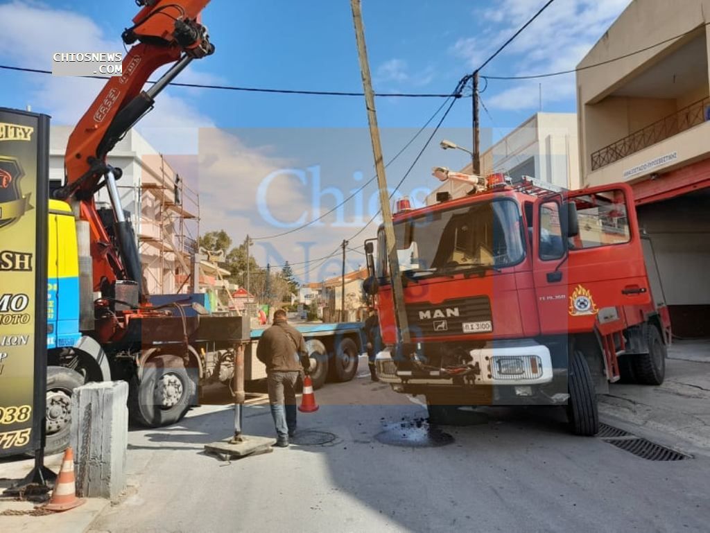 Το συμβάν σημειώθηκε μεσημέρι Πέμπτης, 3/3/22, όταν στην μανούβρα ρουτίνας που έκανε ο οδηγός για να οδηγήσει το όχημα στο αμαξοστάσιο της Πυροσβεστικής Υπηρεσίας Χίου, επί της οδού Αεροπόρου Ροδοκανάκη, βούλιαξε.