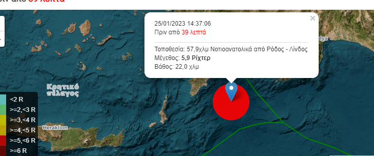 Αρχική Νέα Ελλάδα - Κόσμος Σεισμός 5,9 Ρίχτερ, 58 χιλ. ΝΑ Ρόδου ΝέαΕλλάδα - Κόσμος Σεισμός 5,9 Ρίχτερ, 58 χιλ. ΝΑ Ρόδου 25 Ιανουαρίου 2023 139 Σεισμική δόνηση 5,9 της κλίμακας Ρίχτερ σημειώθηκε περί τις 14:37 σήμερα Τετάρτη, 25/1/23, σε θαλάσσια περιοχή, 58 χιλιόμετρα νοτιοανατολικά της πόλης της Λίνδου στη Ρόδο, σύμφωνα με τα στοιχεία του Γεωδυναμικού Ινστιτούτου. Διαφήμιση
