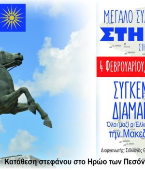 Σε συγκέντρωση για τη Μακεδονία την Κυριακή 4 Φεβρουαρίου στις 11.30 το πρωί στην Πλατεία Βουνακίου, καλεί ο σύλλογος Θρακών και Μακεδόνων Χίου “Ο ΜΕΓΑΣ ΑΛΕΞΑΝΔΡΟΣ”.
