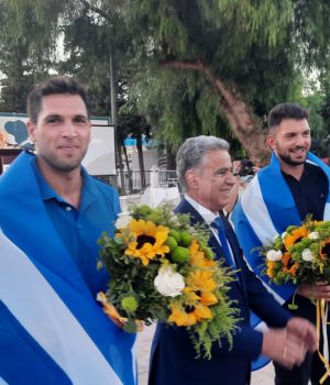 Θερμή υποδοχή επεφύλαξε η Χίος στα δικά της παιδιά, τους δύο Αργυρούς Ολυμπιονίκες με την Εθνική Ομάδα Ανδρών Υδατοσφαίρισης στους Ολυμπιακούς Αγώνες του Τόκιο.