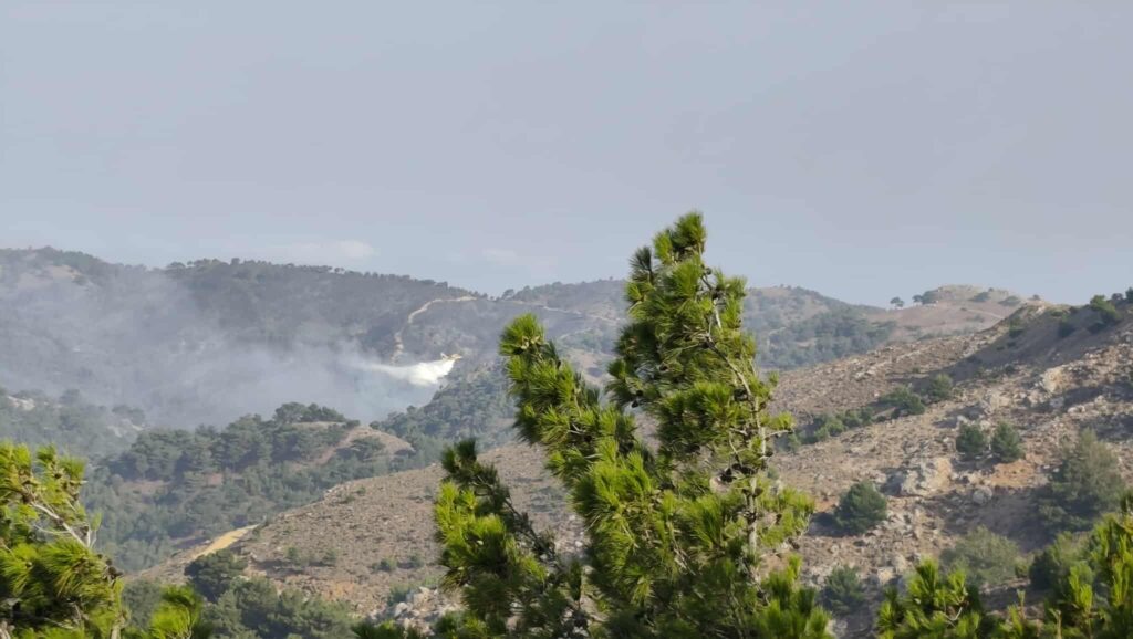 Μετά από μια δύσκολη νύχτα όπου δόθηκε μάχη από τις επίγειες πυροσβεστικές δυνάμεις, τους εθελοντές και τους κατοίκους κοντά στο χωριό Λεπτόποδα, συνεχίζονται οι προσπάθειες για να τεθεί υπό έλεγχο το μέτωπο που υπάρχει στη δασική περιοχή δυτικά του χωριού Καμπιά.