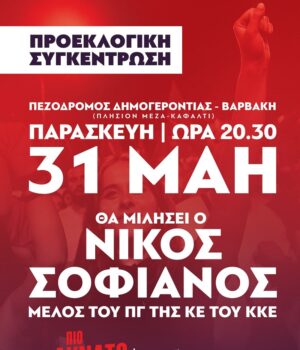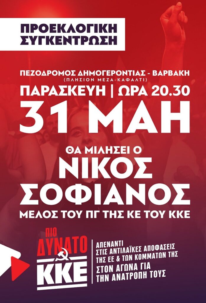Στα πλαίσια της προεκλογικής εκστρατείας του ΚΚΕ βρίσκεται σήμερα Παρασκευή 31 Μαΐου στη Χίο, ο Νίκος Σοφιανός- μέλος του ΠΓ της ΚΕ του ΚΚΕ.