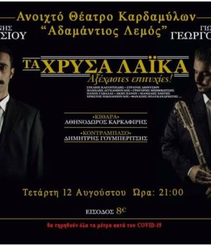 Στο Ανοιχτό Θέατρο Καρδαμύλων “Αδαμάντιος Λεμός” θα βρεθεί σήμερα Τετάρτη 12/8/20 στις 9.00 μ.μ., σε μια μοναδική συναυλία ο Γιάννης Διονυσίου.