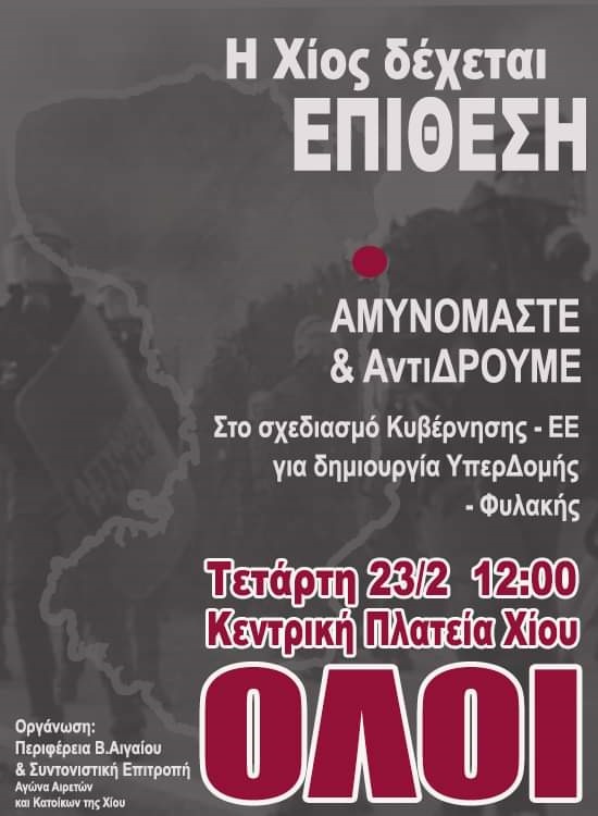 Λέμε ΟΧΙ στη μετατροπή της Χίου σε φυλακή ψυχών για λογαριασμό της ΕΕ.».