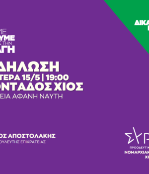 Στο Βροντάδο, στην πλατεία του Αφανή Ναύτη, πραγματοποιείται σήμερα Δευτέρα, 15-5-2023, στις 7.00 μ.μ. η Κεντρική Ομιλία του ΣΥΡΙΖΑ-ΠΣ Χίου.