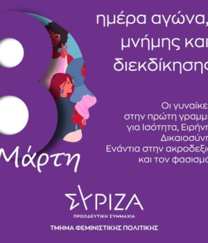 Εμείς ως ΣΥΡΙΖΑ-ΠΣ Χίου τιμούμε την 8η Μάρτη. Οι αγώνες για την ισότητα των δύο φύλων συνεχίζονται.