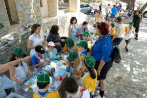 – οι Ανιχνευτές του 1ου Συστήματος Προσκόπων Χίου, μέσα από το παιχνίδια γνώρισαν στα παιδιά επαγγέλματα που χάθηκαν σχετικά με το δάσος· όπως αυτό του ρετσινά.