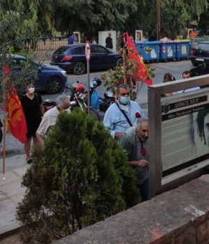 Ως ελάχιστο φόρο τιμής στον Μίκη Θεοδωράκη, αντιπροσωπεία της ΤΕ Χίου του ΚΚΕ, των οργανώσεων Χίου της ΚΝΕ, καθώς και του παραρτήματος Χίου της ΠΕΑΕΑ-ΔΣΕ κατέθεσαν χθες, 7/9/21, λουλούδια, στο σπίτι όπου γεννήθηκε, στην πόλη της Χίου το 1925.