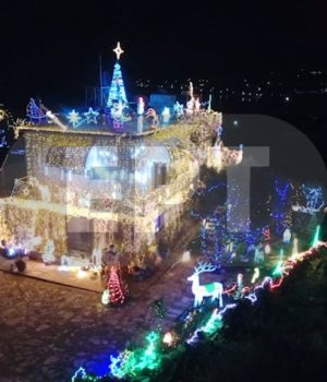 Στολισμένο με 300.000 λαμπάκια έχει το σπίτι της οικογένειας του στον Καρφά της Χίου ο 24χρονος Παντελής Κλάπας. Παιδί πολύτεκνης οικογένειας, εδώ και 10 χρόνια περίπου φωταγωγεί το σπίτι τους τις ημέρες των γιορτών, προσθέτοντας κάθε χρονιά νέες σειρές από λαμπιόνια.