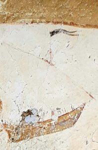 Στη δεύτερη τοιχογραφία που βρίσκεται στη νοτιοδυτική πλευρά του νάρθηκα, μαρτυρείται σε μια λεπτομέρεια η ναυτική παράδοση των κατοίκων του νησιού και η ενασχόλησή τους με το εμπόριο. Συγκεκριμένα ένα τσερνίκι (είδος ξύλινου σκάφους) απεικονίζεται ως λεπτομέρεια ευρύτερης τοιχογραφίας.