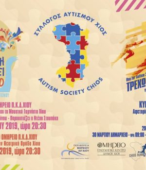 Με αγώνα δρόμου που φέρει το σύνθημα «Τρέχουμε για τον αυτισμό» την Κυριακή 31 Μαρτίου, με αφετηρία στο Δημαρχείο στις 11.00 το πρωί και με προβολή ταινίας, ολοκληρώνονται οι τριήμερες εκδηλώσεις για τον αυτισμό· που διοργανώνει ο Σύλλογος Γονέων, Κηδεμόνων και φίλων ατόμων με Αυτισμό Χίου.