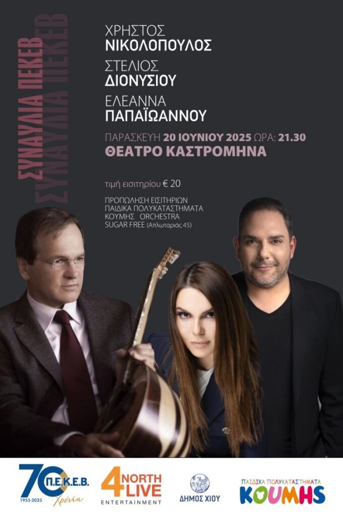 Η ΠΕΚΕΒ φέτος κλείνει 70 χρόνια προσφοράς στον πολιτισμό και στον αθλητισμό της Χίου και προσκαλεί όλους και όλες να γιορτάσουν μαζί της σε ένα ξεχωριστό τριήμερο γεμάτο μουσική, γλέντια και χαρές στις 20-21-22 Ιουνίου.