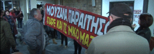 Στα συνθήματα κυριαρχούσε ο χαρακτηρισμός «φασίστας» και στη συνέχεια το «πρώτη φορά φασιστική αριστερά» , για να αρχίσουν να τραγουδούν το «δεν θα περάσει ο φασισμός» του Μάνου Λοϊζου. Αλλά στο κλείσιμό του να ακούγεται και ο χαρακτηρισμός… «παλιοκομμούνι»!